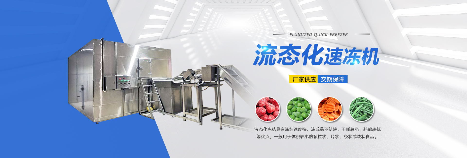 我公司擁有多年的生產技術經驗,雄厚的技術力量,強有力的科研開發團隊,形成 了以產品開發、工藝設計、生產制造、產品檢驗、安裝調試于一體的完善的質量體系和服務體系的技術企業。我公司主要經營生產各類速凍機設備,隧道式速凍機 流態化速凍機 單螺旋速凍機 雙螺旋速凍機 液氮隧道式速凍機等速凍設備,還生產制造巴氏殺菌機,蔬菜清洗機,烘干機等設備。